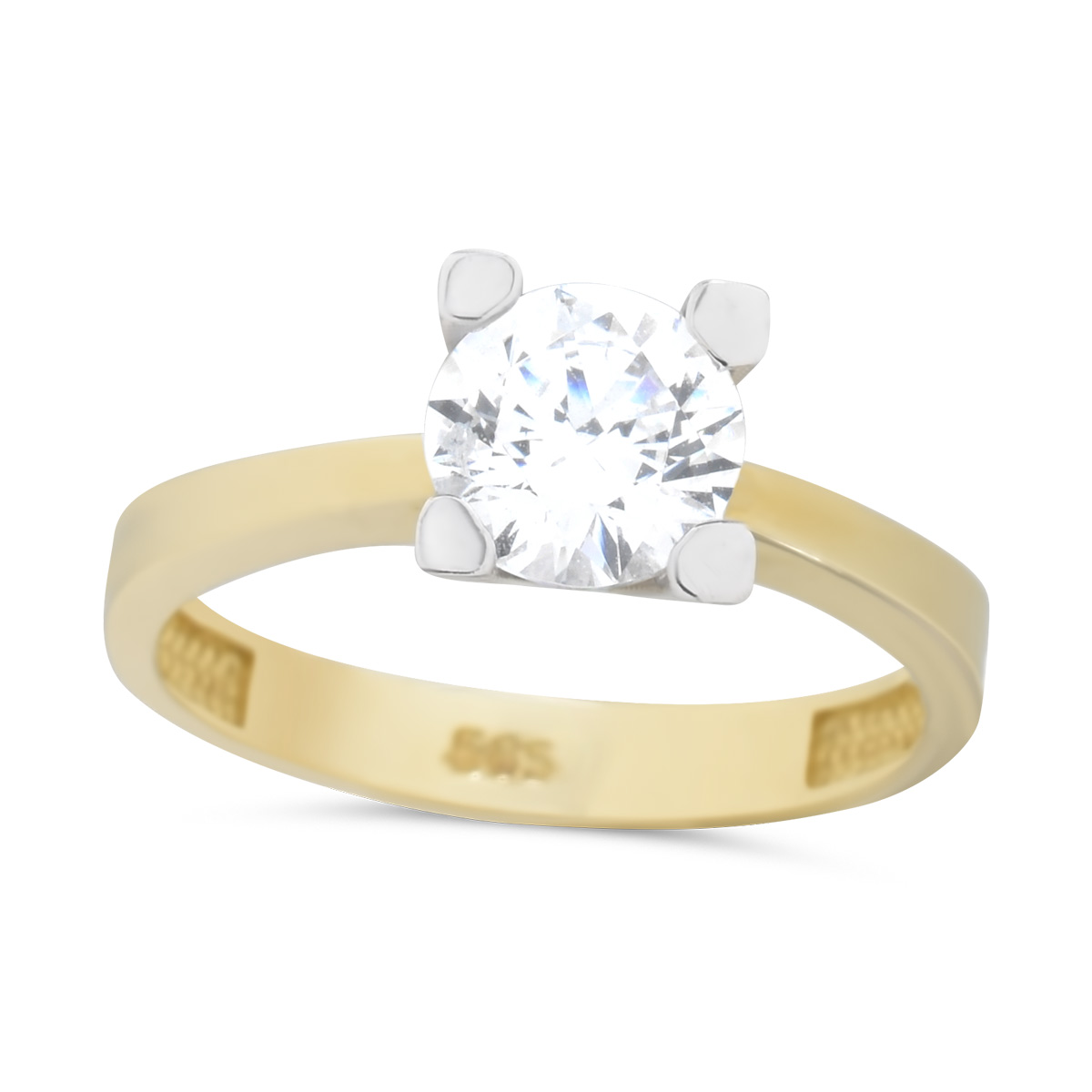 Δίχρωμο Χρυσό Μονόπετρο Δαχτυλίδι Κ14