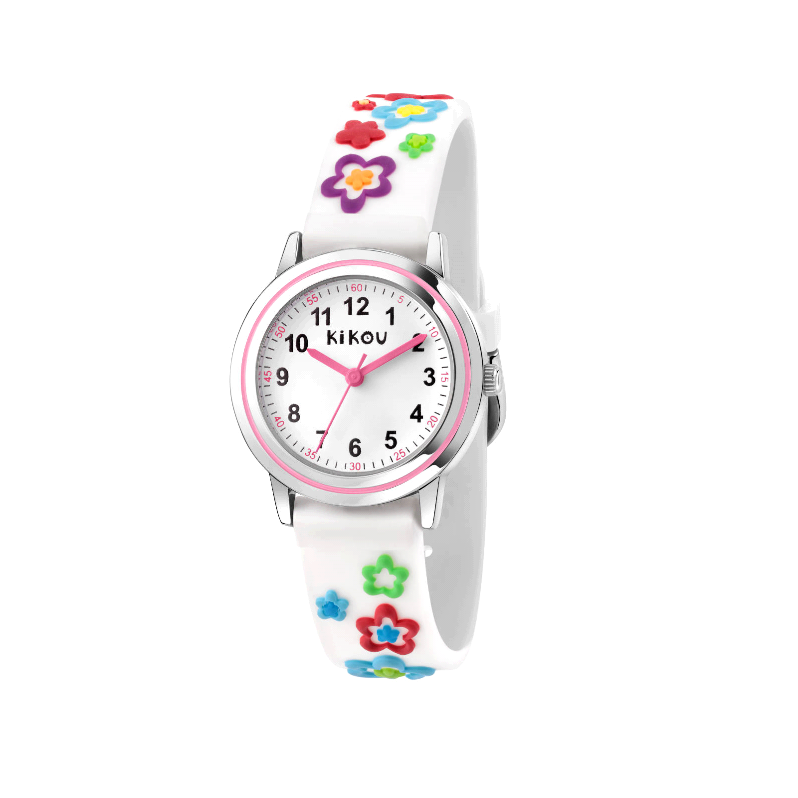 Παιδικό ρολόι KIKOU HOBBY R4551101502 διαμέτρου 28mm, με μηχανισμό QUARTZ ακριβείας, λευκό καντράν, μεταλλική κάσα και λευκό καουτσούκ λουράκι.