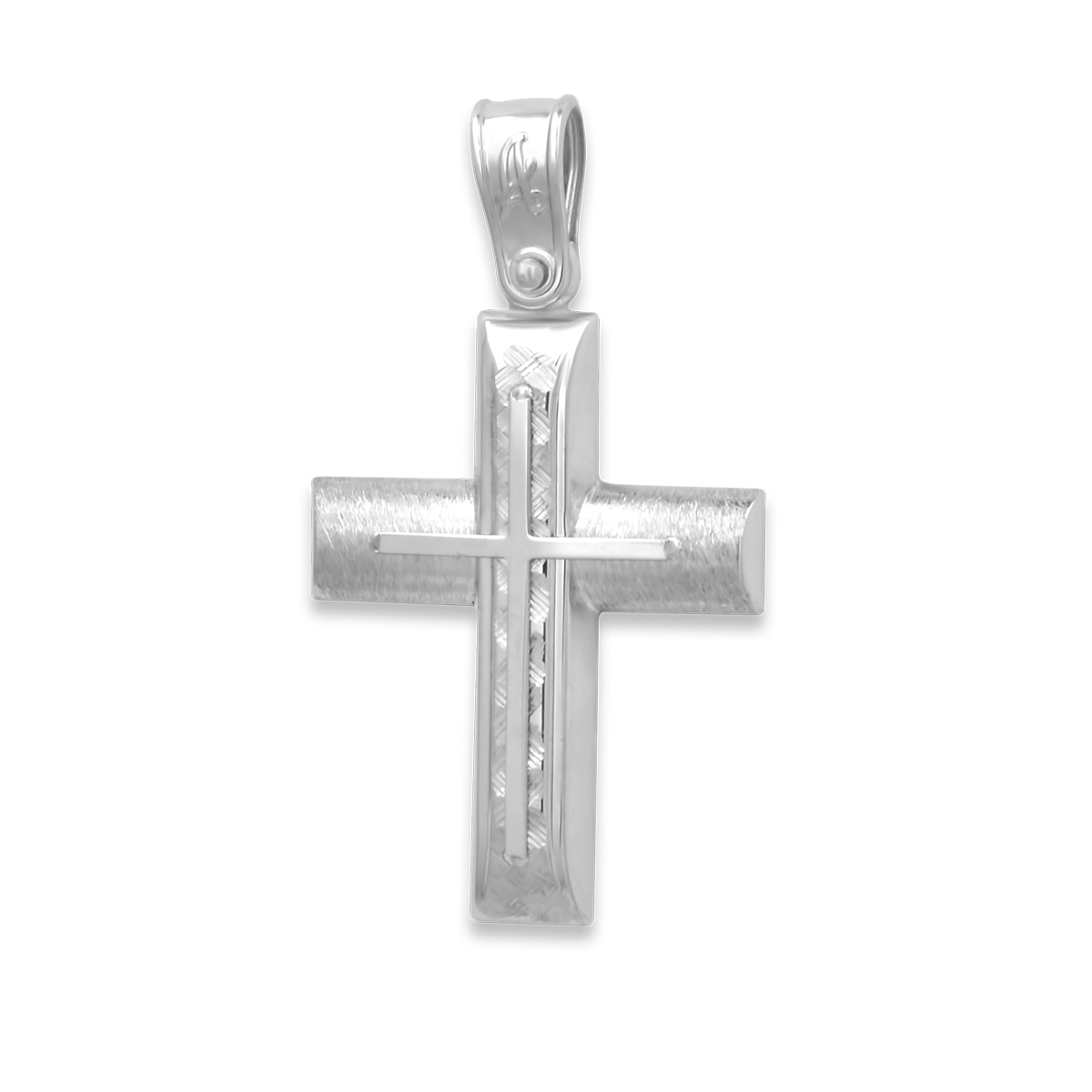 Σταυρός για άντρα ή γυναίκα κατασκευασμένος από λευκόχρυσο 14 καρατίων, με ανάγλυφο σχεδιασμό